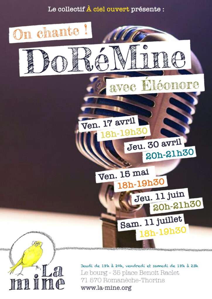 Rejoignez les membres de l’Atelier de chant DoRémine, animé par Éléonore Duclaux, musicothérapeute.